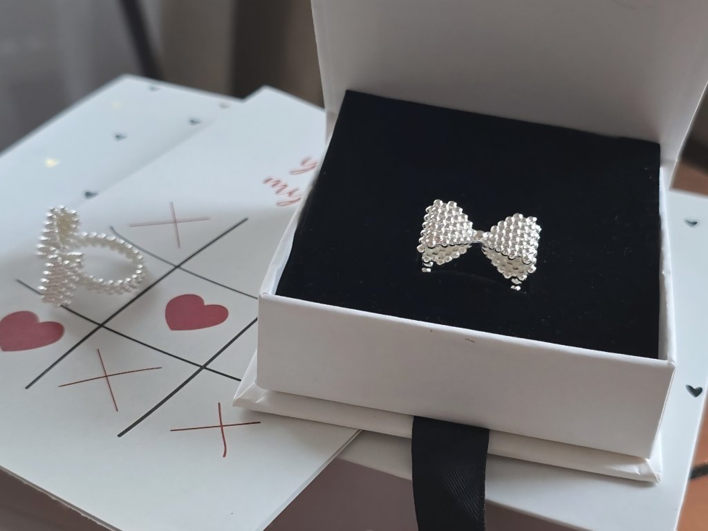 Prstýnek Mašle je moderní statement, který okamžitě dotáhne outfit. Čistý design, aktuální vibe a detail, který funguje jako hook — nenápadně, ale sebevědomě.